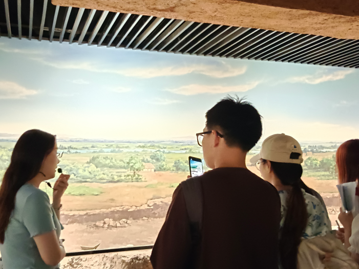 為提高高校志愿講解員的專業能力,徐州博物館高校志愿講解員張婧涵、劉晨帶領16位同學前往徐州博物館進行相關培訓。5月13日上午,兩位志愿講解員在徐州博物館學術報告廳為16位同學講授講解詞中涉及的徐州歷史背景、徐州博物館館藏文物常識、講解員講解技巧、講解過程中應急狀況處理辦法、講解員基本禮儀等八部分相關知識。下午在徐州博物館展廳中為各位同學進行一場展廳通講講解以及講解展線規劃,各位同學用手機相機和筆記本記錄培訓重要的知識,進而完善自己的講解內容。