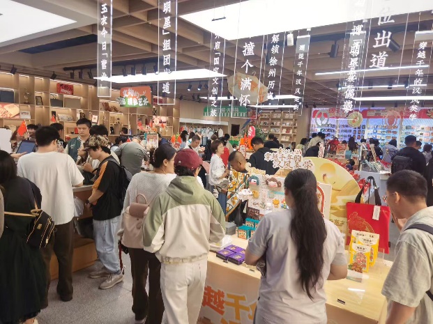 在游覽中也要滿足游客的口腹之欲,我館圍繞非遺文創主題展示徐州特色美食,糖畫、烤串、徐博卷、文創雪糕、徐州米線,徐州香包、徐州剪紙、文創冰箱貼等多種具有徐州特色的伴手禮以逛集市賞文化吃美食的形式來擴大游客消費引流效應,在獵奇的消費中感受假期生活的趣味與輕松。并在集市中設立愛國表白墻,吸引數萬名游客打卡祝福祖國生日快樂,昌盛永駐。
