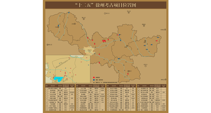 近年來,結合基本建設工程,徐州博物館一方面積極參與南水北調、泰東河、鄭徐客運專線等國家、江蘇省的大型基建考古項目,另一方面主動圍繞徐州城市發展和五縣五區基本建設開展搶救性考古工作。發掘工作在很多方面都取得了突破和進展,臥牛山墓群的發現進一步廓清了楚王墓順序、對應關系及陵園布局;蘇寧廣場遺址距地表10米以下發現西漢楚國都城彭城的東城墻,首次明確了彭城位置;土山二號墓“邊發掘邊開放”的理念不但要求考古工作為整體展示保護服務,對考古提出更高的要求,同時實現了考古現場走進公眾視野;奎山、鐵剎山、荊山、邳州埠上、新沂高莊等一批漢代墓群的發掘揭露了漢代平民階層的墓地布局和喪葬習俗;睢寧龍頭山明墓在徐州首次發現了精美的明代磚雕、彩繪及保存完整的墓葬結構。這些新突破、新進展必將引起學術研究的進一步深入,引導徐州考古未來的方向。