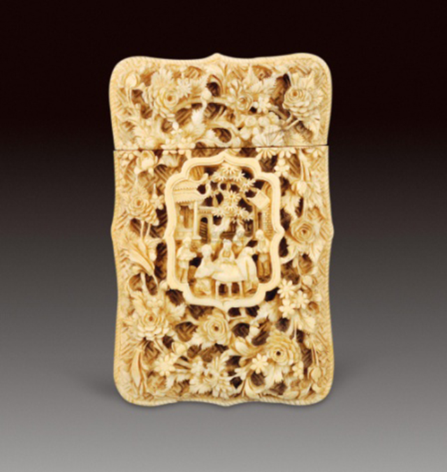 名片盒,顧名思義就是放置名片的盒子,是名片出現(xiàn)后的衍生品。在18世紀末以后,隨著名片在西方社會被廣泛使用,放置名片的名片盒成為紳士淑女、上層人員交往的隨身之物。廣州抓住這一需求,名片盒在廣州大為流行。